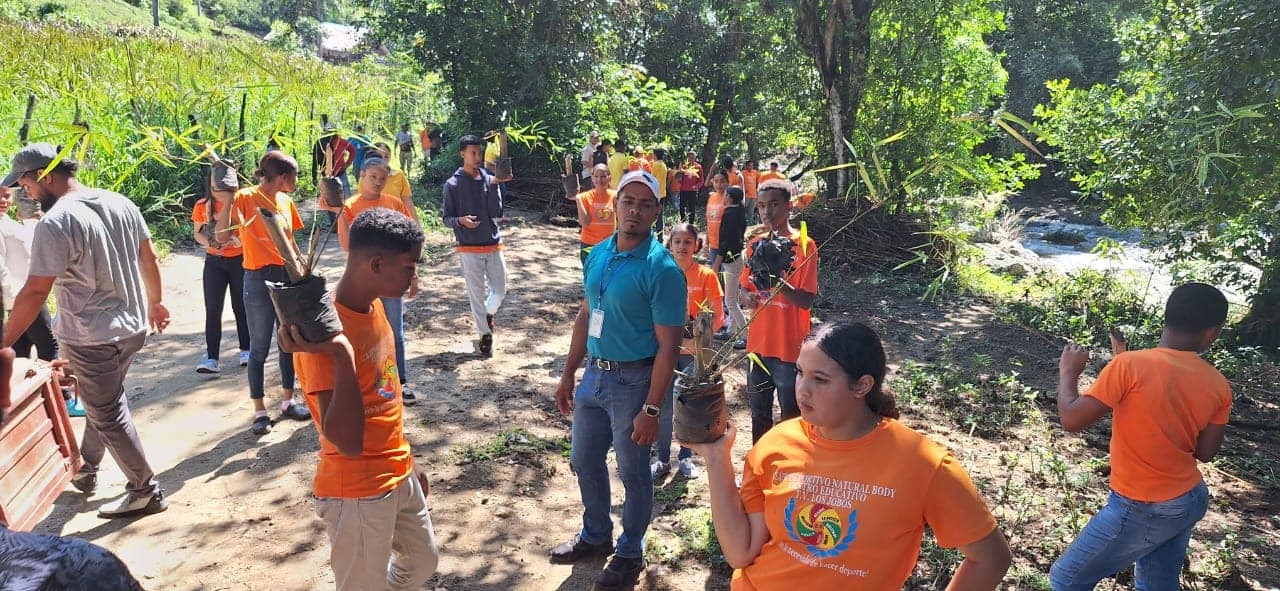 SANTIAGO RODRIGUEZ, República Dominicana.-El Instituto para el Desarrollo del Noroeste (INDENOR), con el apoyo del Ministerio de Educación de la República Dominicana, realizó una jornada de reforestación con los estudiantes del Liceo Los Jobos, en la ribera del río Cana, en la comunidad de El Jobo, en esa provincia.