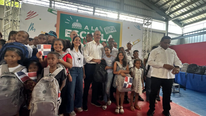 El presidente Luis Abinader, junto a la ministra de Interior y Policía, encabezó en el sector Capotillo del Distrito Nacional la entrega de 500 lámparas, 500 mochilas y 18 canchas móviles que fueron donadas por la entidad.