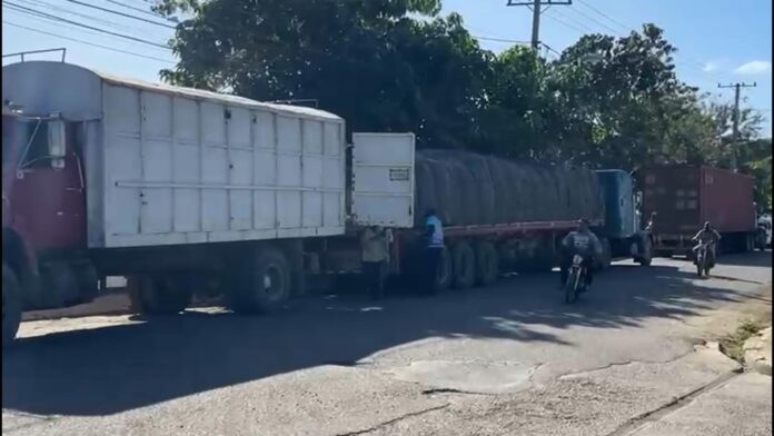Patanas y otros vehículos pesados procedentes de Haití están generando un marcado desorden y congestión vehicular en la Calle Ancha del municipio de Dajabón, al utilizar esta importante vía como punto de carga y descarga de mercancías.