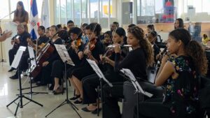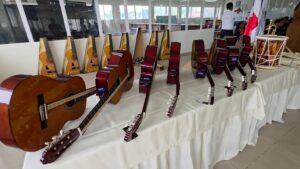 La agenda concluyó en la Escuela de Bellas Artes de Dajabón con la entrega de guitarras, instrumentos de viento y percusión, como parte del Programa de Donación de Instrumentos Musicales del Ministerio de Cultura, orientado a fortalecer las rondallas infantojuveniles y la formación artística en las provincias.