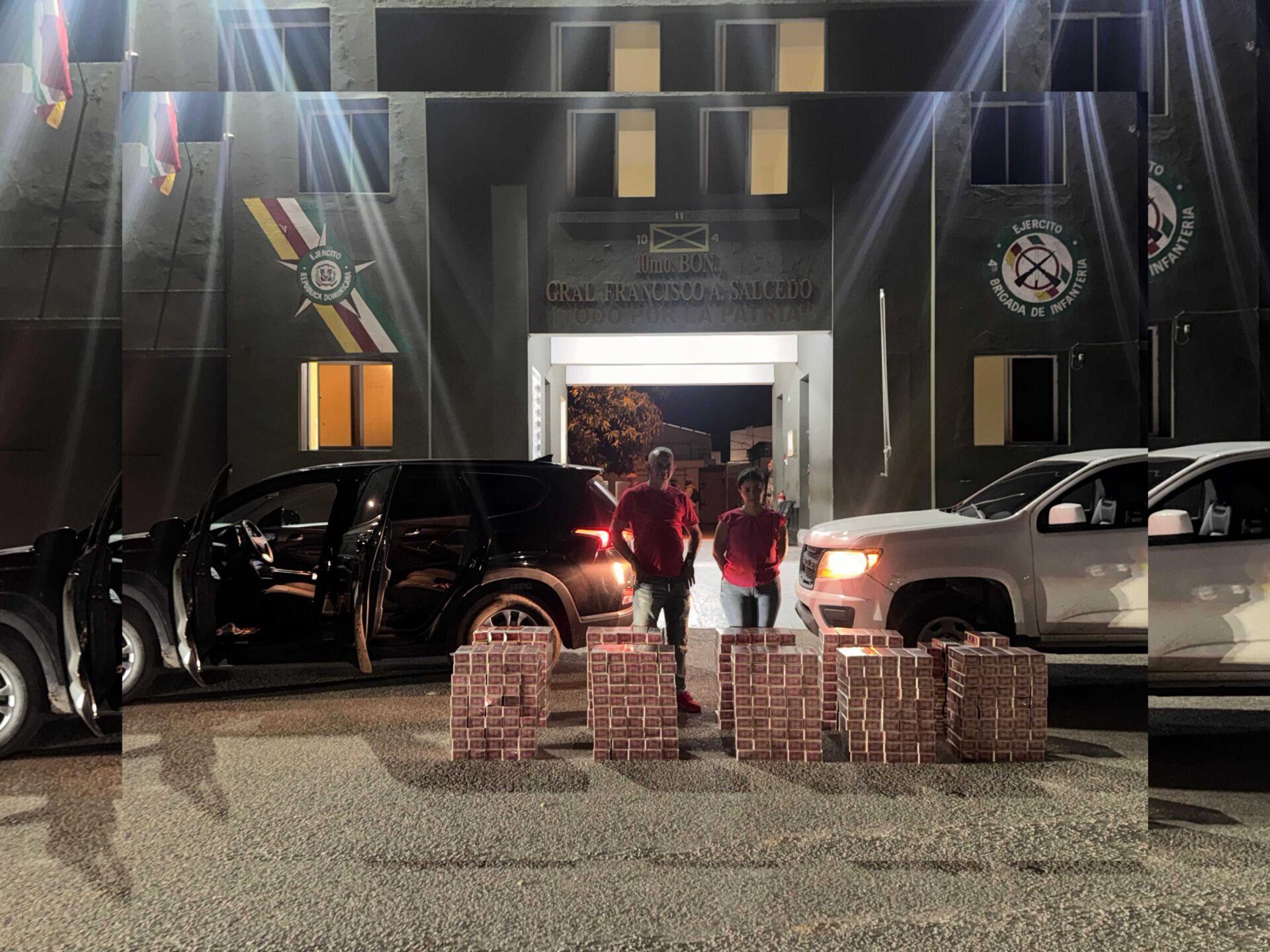 Dajabón, R.D. – Soldados del Ejército de República Dominicana (ERD), adscritos al 10mo. Batallón de Infantería, detuvieron a dos personas y ocuparon un cargamento de cigarrillos que fueron introducidos de manera ilícita en Dajabón.