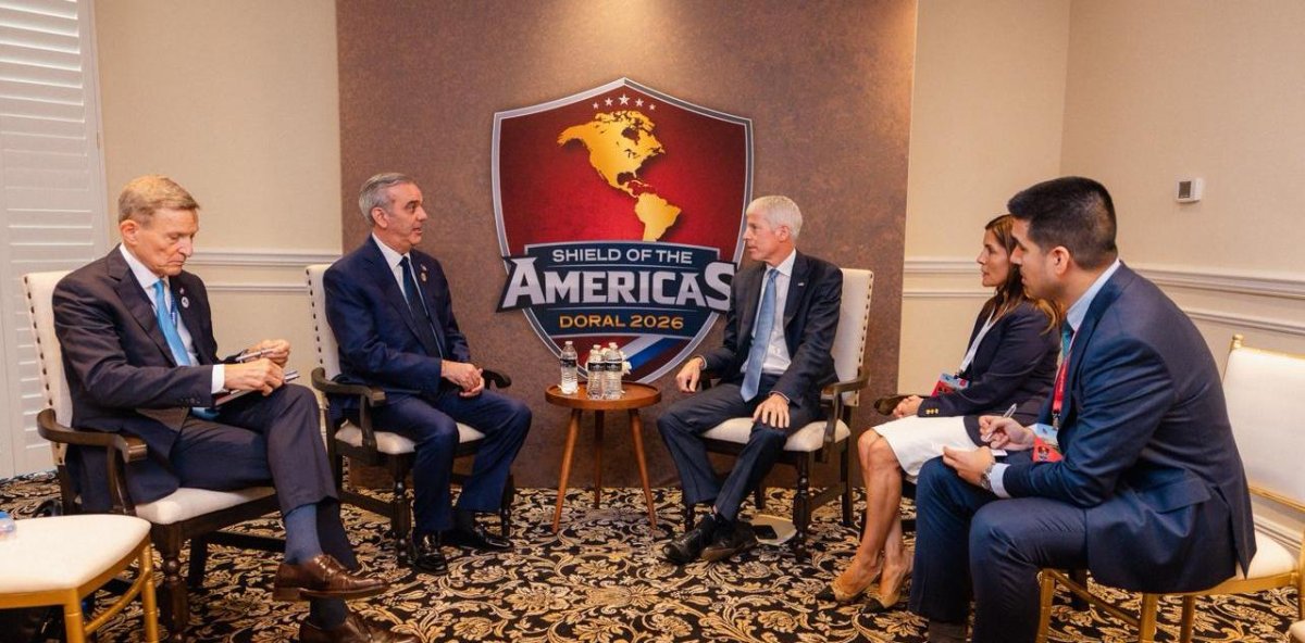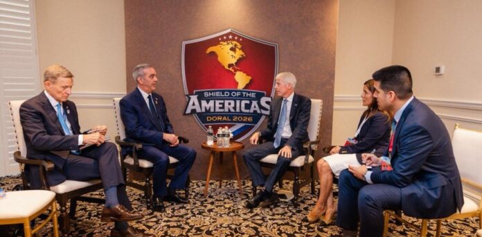 El presidente de la República, Luis Abinader, sostuvo este sábado una reunión bilateral con el secretario de Energía de los Estados Unidos, Chris Wright, en el marco de la cumbre regional denominada Escudo de las Américas.