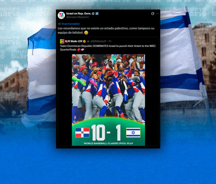 El Estado de Israel respondió este lunes a una publicación realizada desde una cuenta vinculada a Palestina en la red social X, luego de que esta se burlara de la derrota del equipo israelí frente a la Selección de Béisbol de la República Dominicana en el Clásico Mundial de Béisbol.