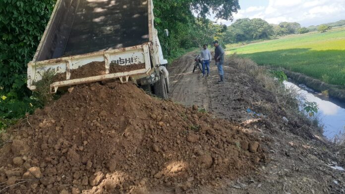 Detalló el encargado de agricultura en Dajabón que el ayuntamiento de loma de cabrera facilitó el gredar, la junta de regantes una retropala, el indrhi el combustible y el ministerio de agricultura los camiones volteo.