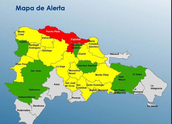 En nivel de alerta roja se encuentran Puerto Plata y Espaillat.